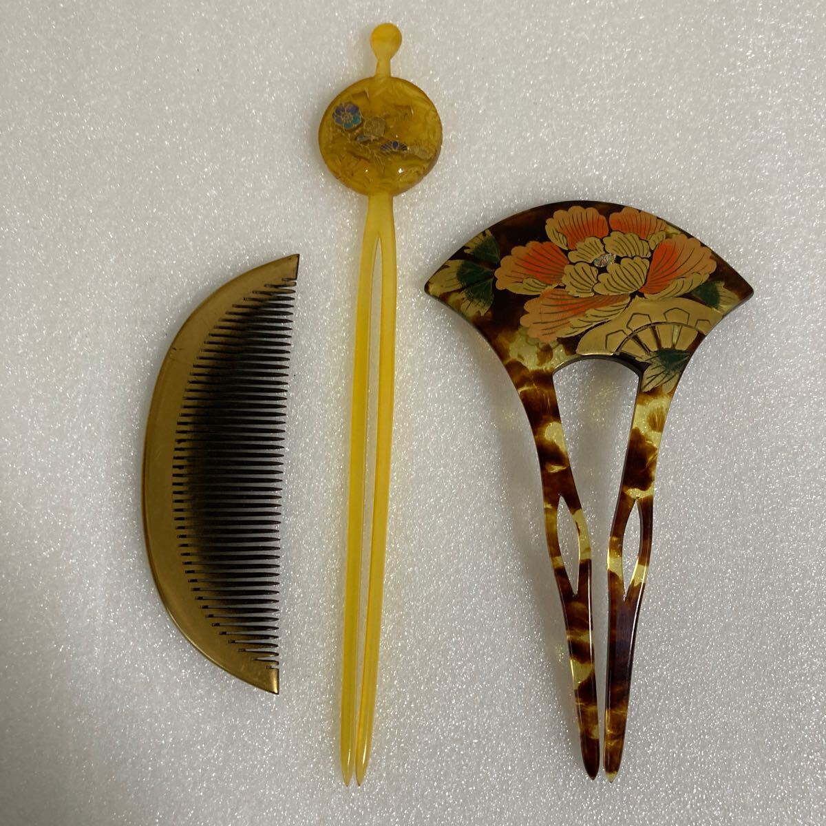 - かんざし 髪飾り 和装小物 べっ甲 櫛 くし 金蒔絵 螺鈿 アンティーク