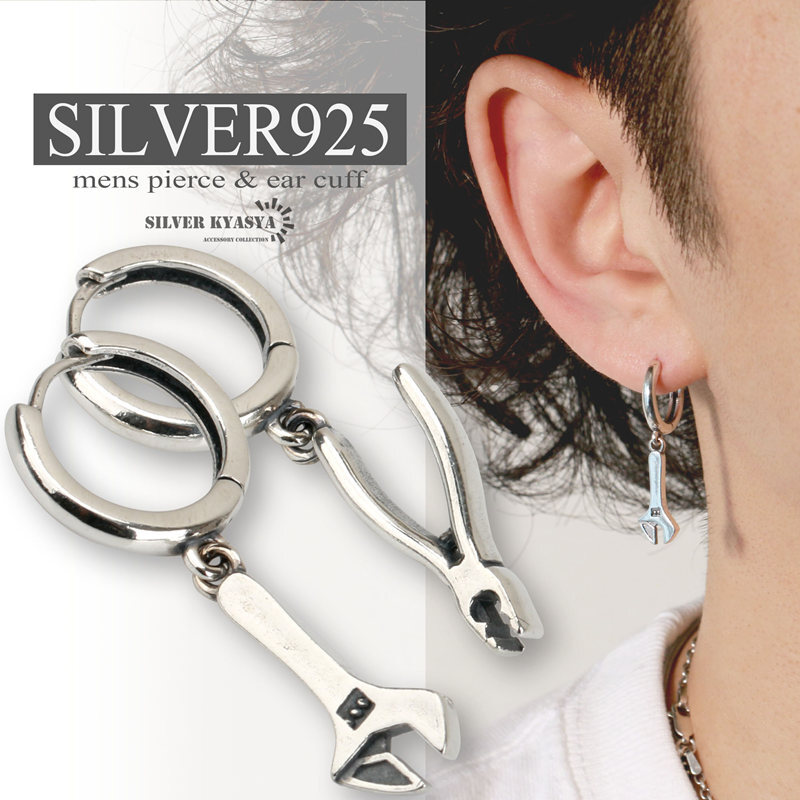 - (レンチタイプ) スパナピアス シルバー925 レンチ ペンチ 工具 ピアス 男性 フープピアス ツール 片耳用 20G
