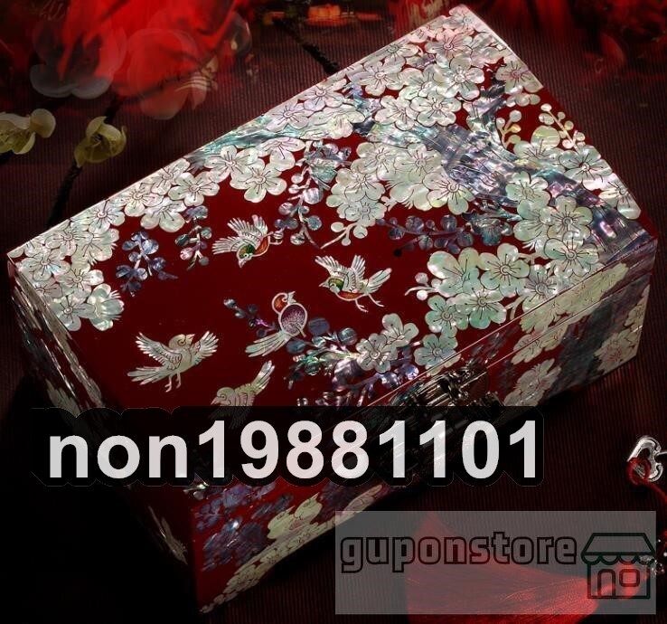 > 人気推薦★極美品★高級感★漆器 天然シェル 木製 純手作り製作真珠層ラッカー貝殻ジュエリーボックス宝石箱結婚アクセサリーケース箱多層