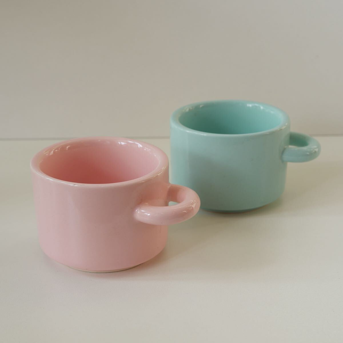 - 80s 資生堂 パステルカラー ペアカップ 昭和レトロポップビンテージ ノベルティ企業モノ販促品