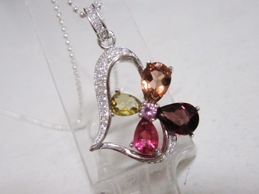 - オシャレで可愛いハートモチーフのMIXトルマリンのシルバーペンダント