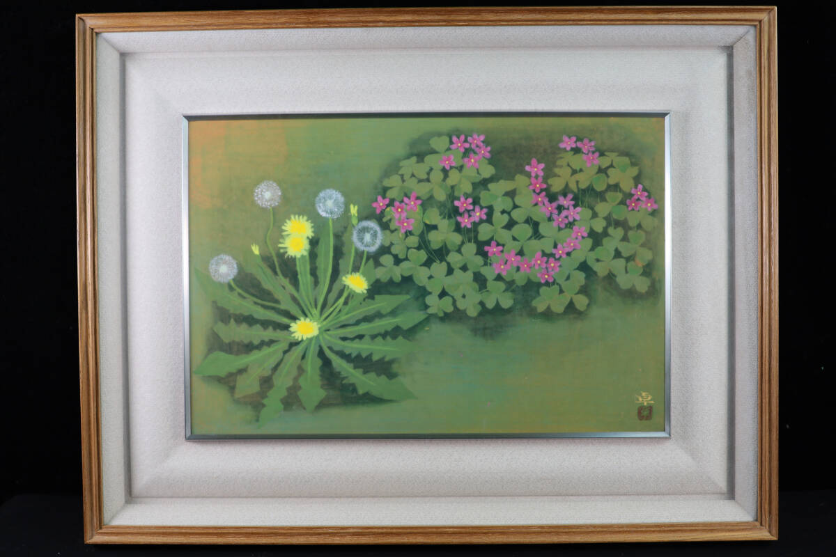 > ◇雅◇ 真作保証 上原卓 「春の草」 6号 日本画 共シール 創画会会員 京都市立芸術大教授 額装 タトウ箱 /OD.25.5 [J64] SN