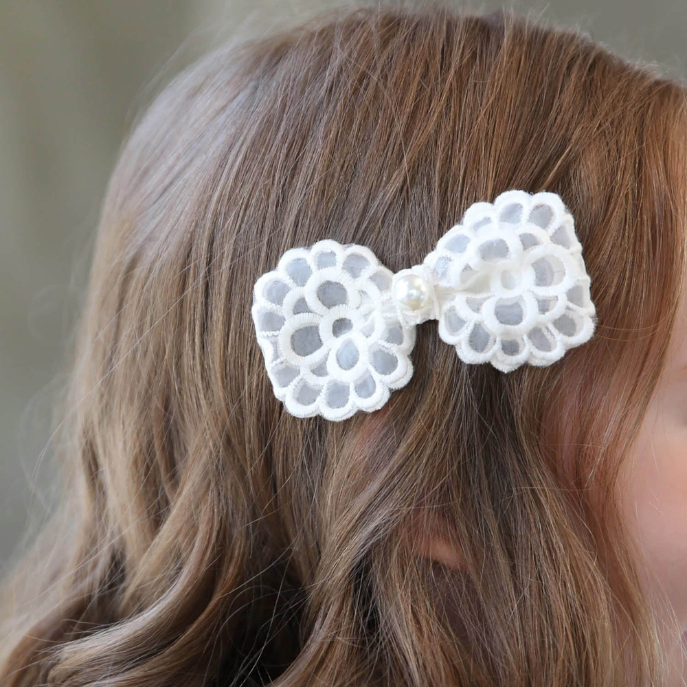 - ☆ アイボリー ☆ フリー ☆ ベイリー ヘアクリップ Rora ヘアクリップ キッズ ベイリー 髪飾り 髪留め リボン 大きめ レース パール