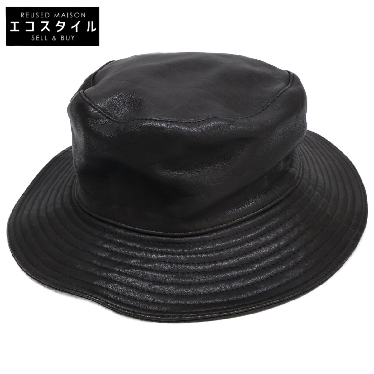 > HERMES エルメス MOTSCH HERMES モッチエルメス レザー バケットハット 帽子 58 ブラック メンズ