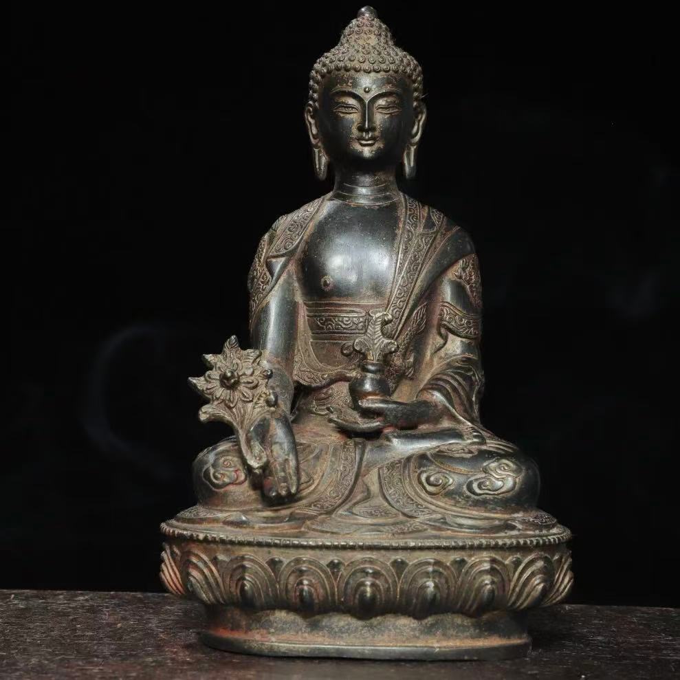- 仏像 清代 藏 宗教仏像である銅泥金【薬師仏】を家に供えて像を造る 文房具 仏教 銅製 銅琉金 唐物 收蔵品 時代物 古置物 供養品 6.3