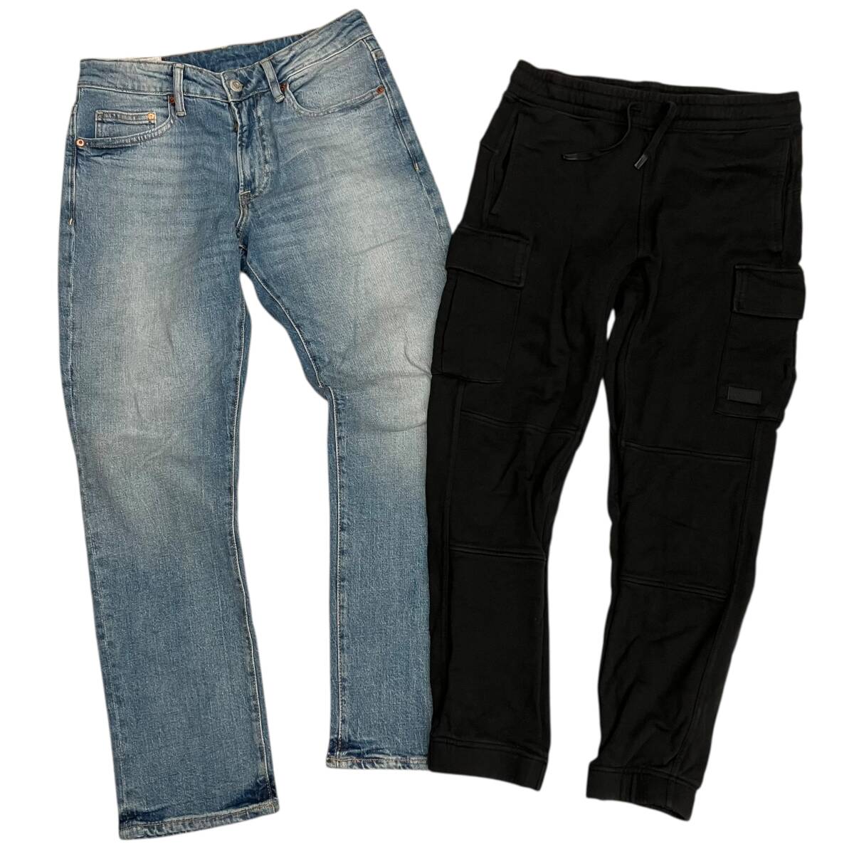 > H&M エイチアンドエム 2着セット ストレートレギュラーデニム 29/30 S カーゴパンツ ジョガーパンツ ブラック メンズ