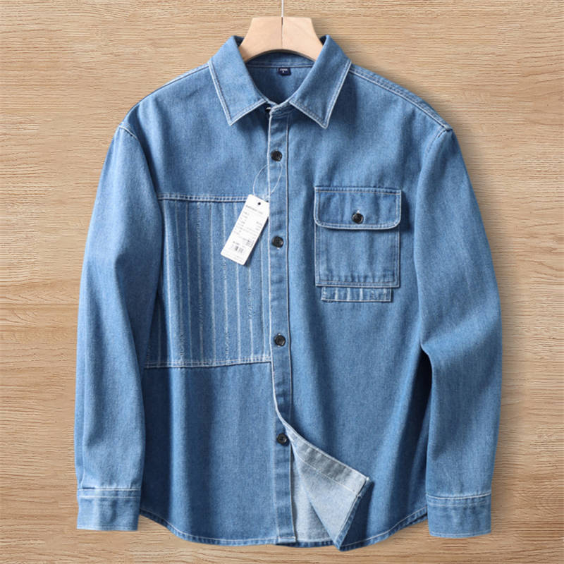 - W0357-3XL青色 新品 綿混 デニム 長袖シャツ メンズ 柔らかい 吸汗速乾 通気 涼しい ダンガリー 薄手 春夏 オシャレ デニムシャツ サマー