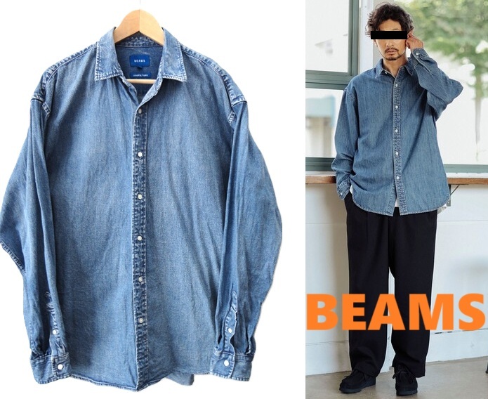 - 状態良好■BEAMS:ビームス■日本製 デニム生地使用 イージー フィット デニム シャツ■インディゴ■Lsize