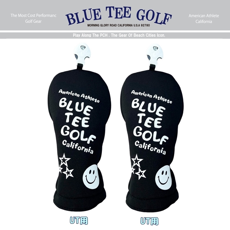 - ◎2本セット ブルーティーゴルフ【UTブラック:ストレッチ スマイル】ユーティリティー用カバー STHC-03 BLUE TEE GOLF 送料無料