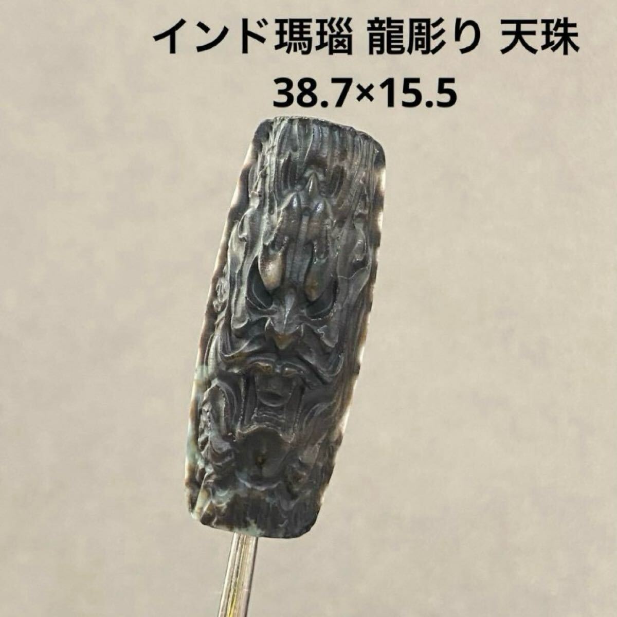 - D220 インド瑪瑙 龍彫り 天珠 38.7×15.5