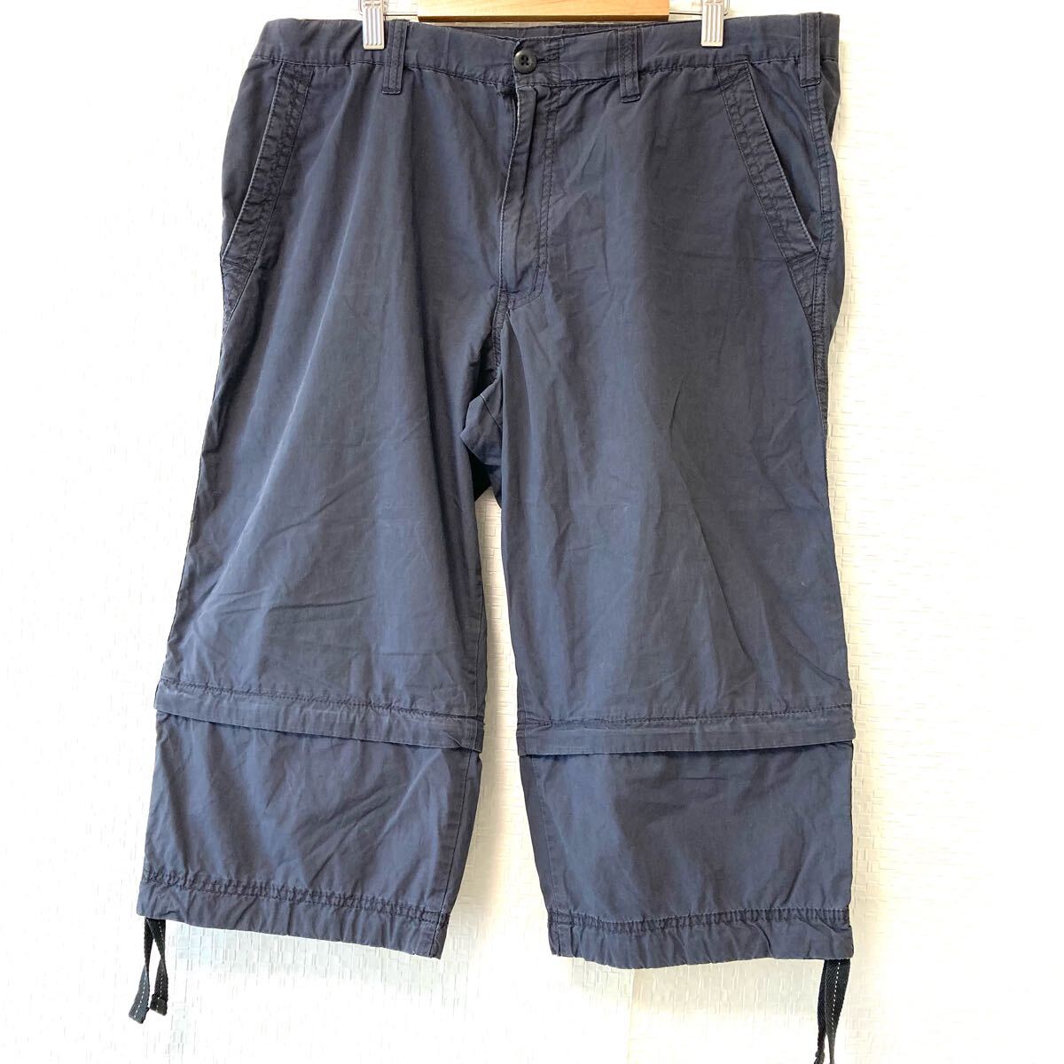 > 2way◎【UNIQLO】ユニクロ スリークォーター パンツ ハーフ ショート 綿100% アクティブ 爽やか アウトドア グレー メンズ L/Y31814UU