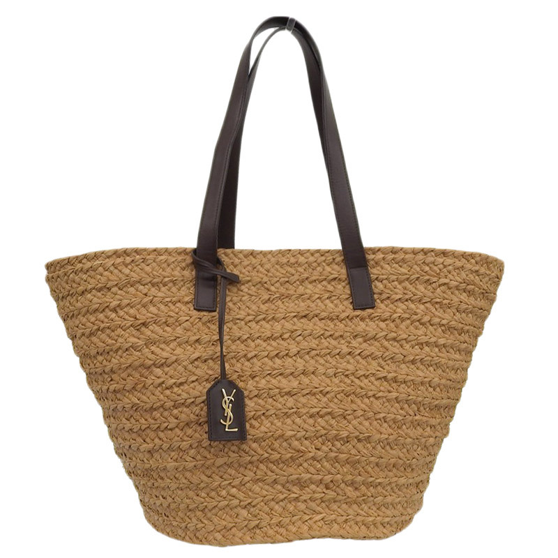 > サンローラン SAINT LAURENT パニエ ミディアム トート バスケットバッグ ラフィア/レザー ベージュ/ブラウン 579521 中古 新入荷 OB2404
