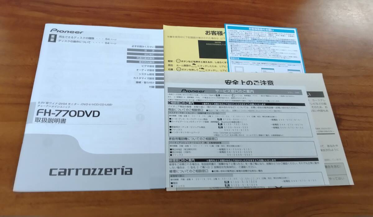 - 7-6 carrozzeria FH-770DVD 取扱説明書 他付属チラシ カロッツエリア 5.8V型ワイドQVGAモニター/DVD-V/VCD/CD/USB/