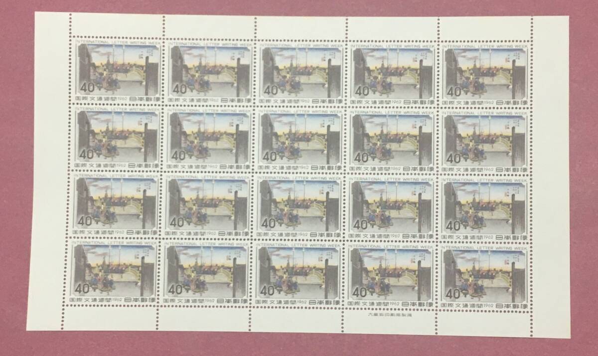 - 国際文通週間 日本橋 40円 1962年 20面シート 未使用品