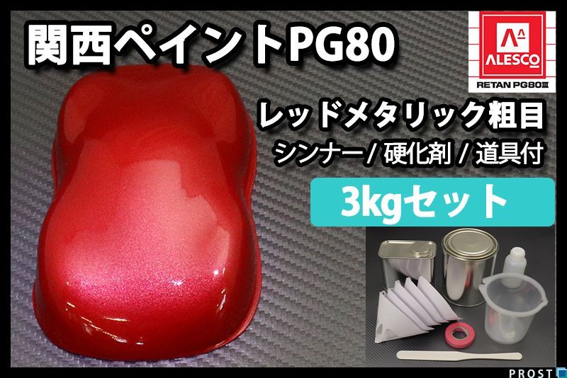 - 関西ペイント PG80 レッド メタリック 粗目 3kg セット / 2液 ウレタン 塗料 赤 Z26