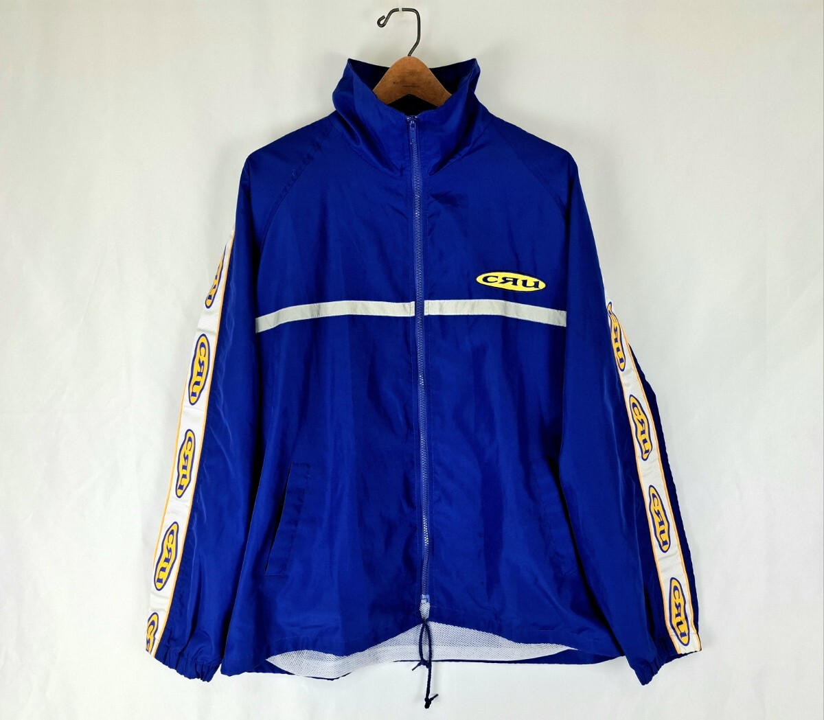 > 良好 90s~ USA製 CRU 袖ロゴライン ジャケット Lサイズ 90年代~ アメリカ製 クルー トラックジャケット ビンテージ / ナイロンジャケット