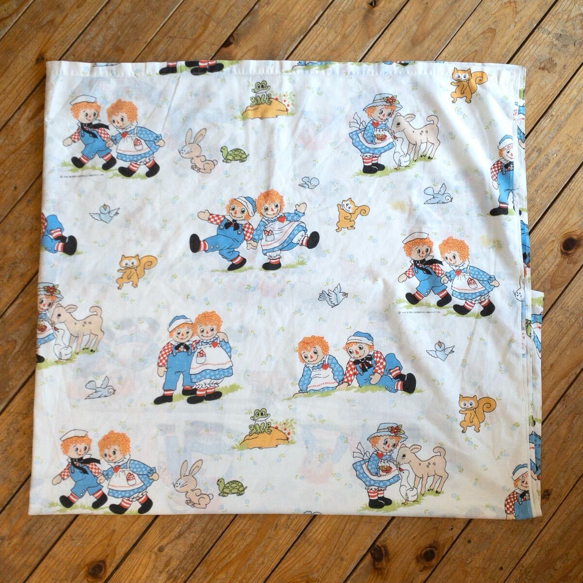 > USAヴィンテージ ベッドシーツ ラガディ アン&アンディ リメイク生地 人形 素材 ポップ 可愛い フラットシーツ アメリカ仕入 B2792