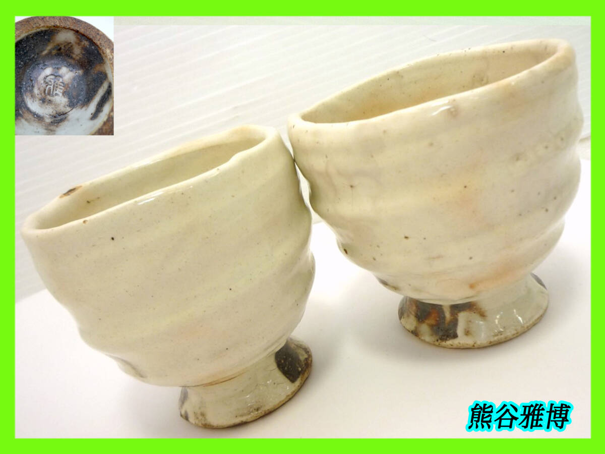 - 旧家蔵出 上野焼 熊谷雅博 粉引高足汲出 2個セット 熊谷本釜 銘有 在銘 茶道具 煎茶碗器 湯呑 茶器 茶室 上品 華美 来客用 重厚 美品 逸品