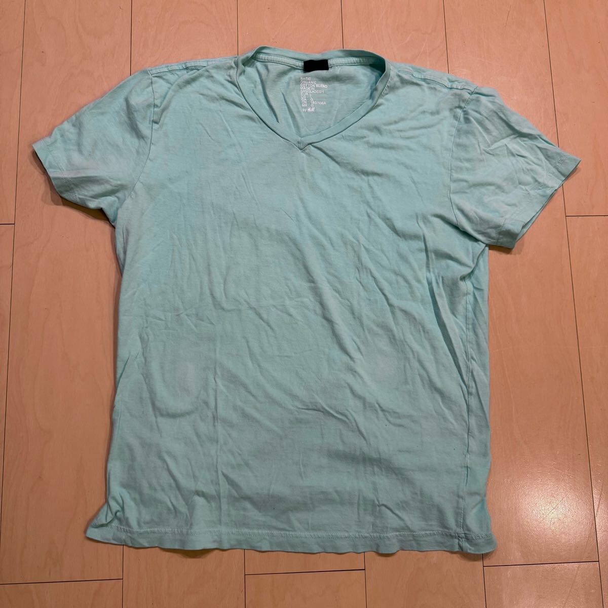 - H&M Vネック半袖Tシャツ ミントグリーン サイズL 格安!