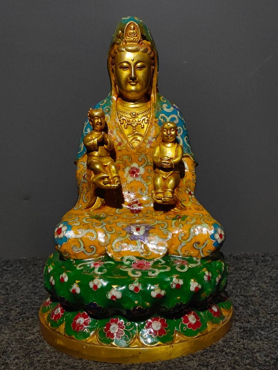 - 蔵友旧蔵出 銅製 景泰藍 琺瑯彩 送子觀音像 貴重品 置物 古賞物 密宗密教 供養品 仏教美術品