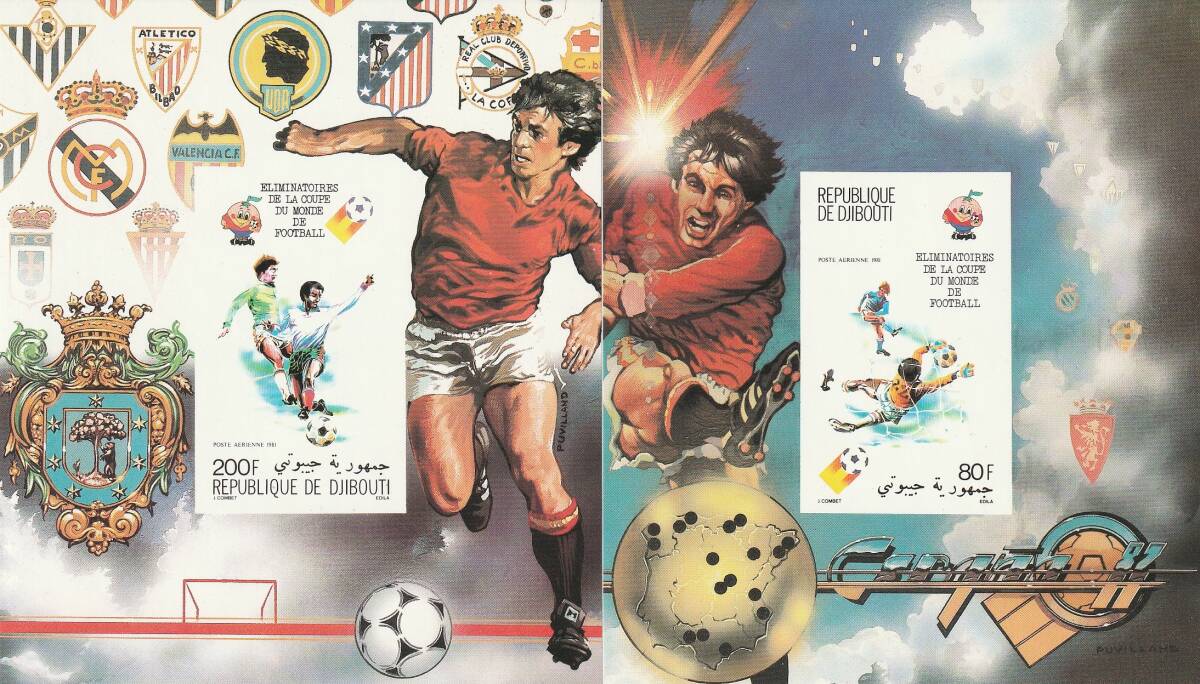 - (ジブチ)1981年ワールドカップ無目打ち小型シート2種完、マイケルカタログ評価40ユーロ(海外より発送、説明欄参照)