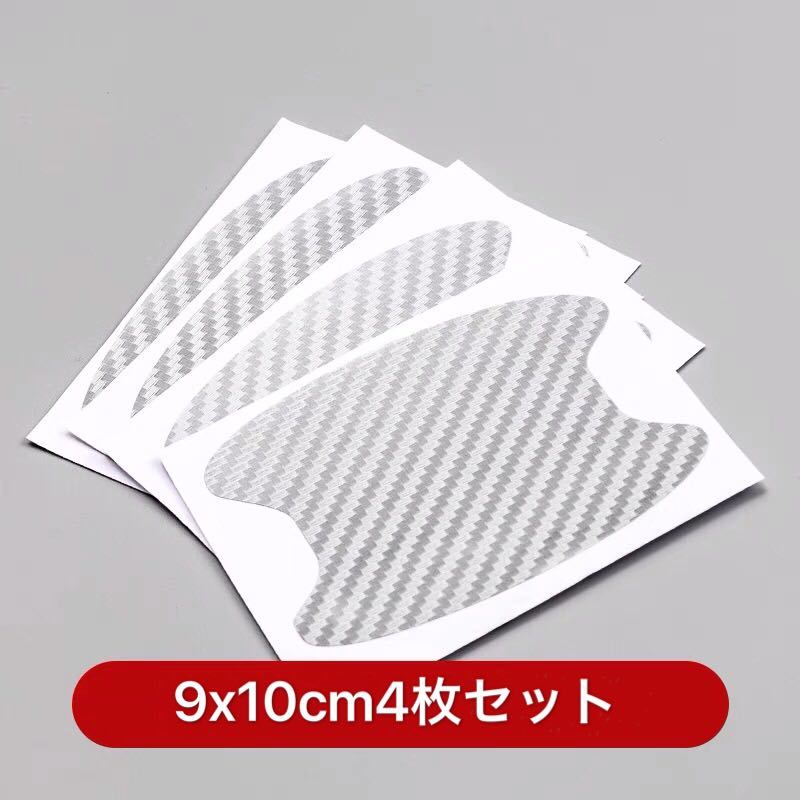 - 傷防止 4枚セットドアハンドル ドアノブ プロテクター カーボン調 シルバー