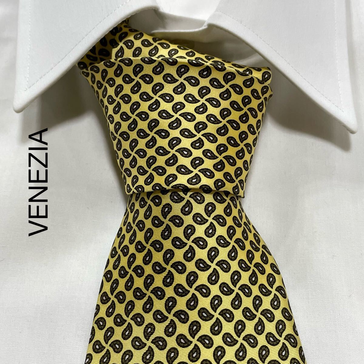 - VENEZIA ペイズリー パターン柄 デザイン シルク ネクタイ イタリア製 イエロー TG1620