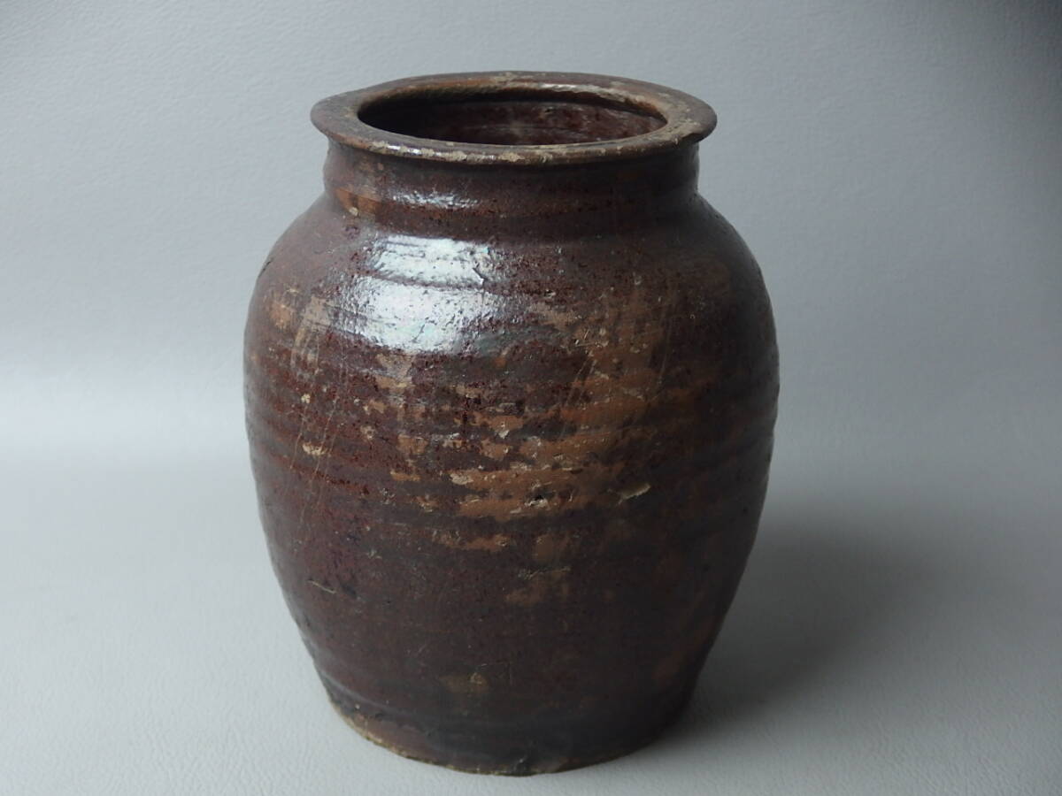 - 【骨董・茶道具】★古い 越前焼?瀬戸焼?★★輪線文壷 gj092ub21.7 花道 華道 鉄漿 蹲