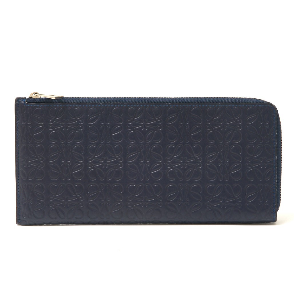 - LOEWE ロエベ アナグラム L字ファスナー フラットウォレット 長財布 カーフレザー ネイビー×シルバー メンズ レディース ユニセックス