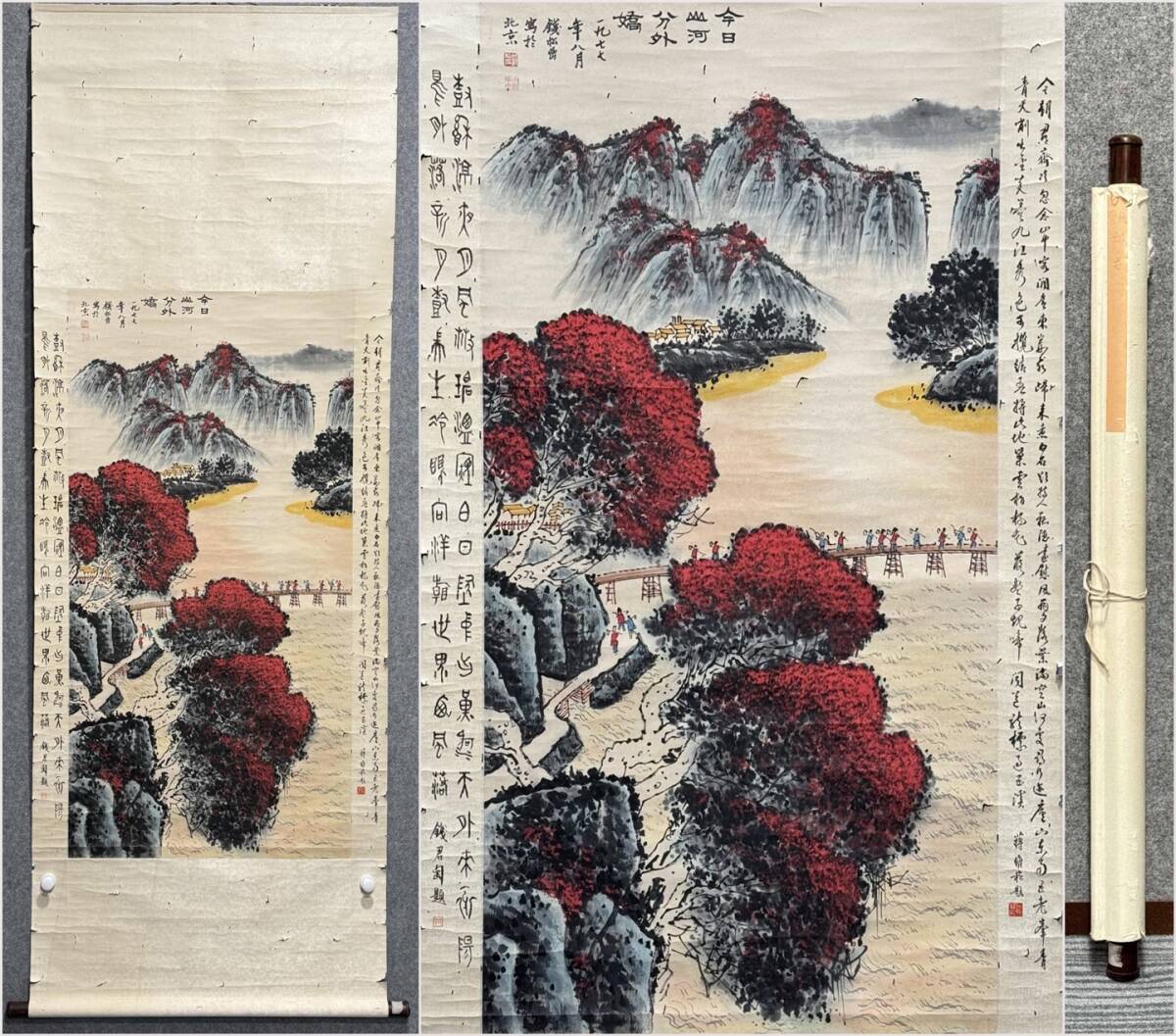 - 古美術 掛け軸 中国・近現代 「銭松岩書」 紙本 【今日山河分外嬌】 立軸 書道 巻き物 肉筆保証 唐物 古画 画心135x67.5cm LT-250661