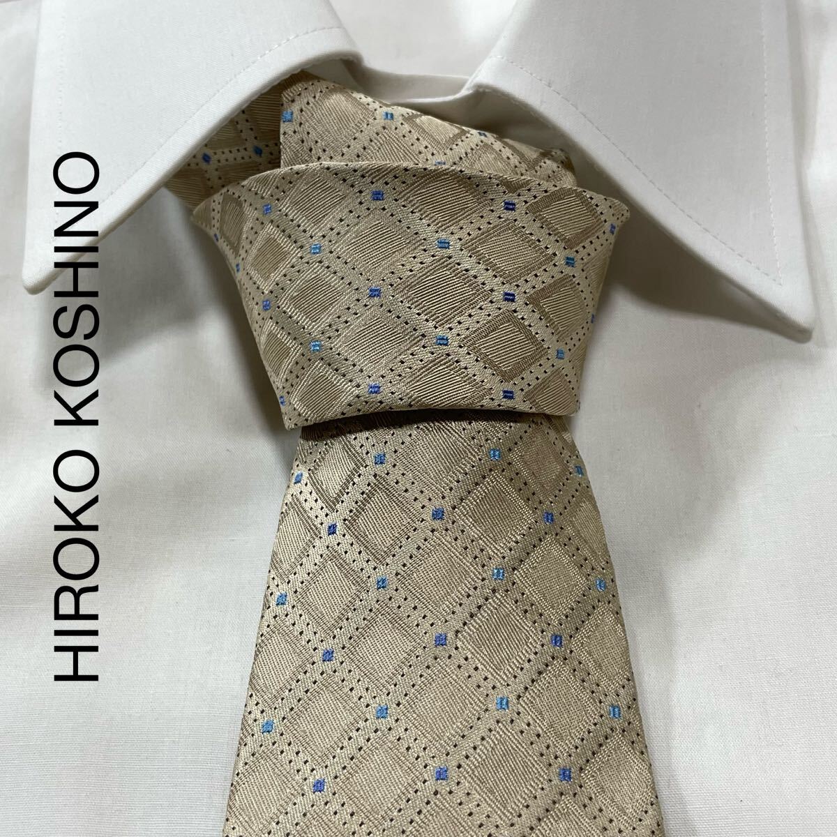- HIROKO KOSHINO ヒロココシノ チェック ドット ジャガード シルク ネクタイ ブラウンベージュ TG1739