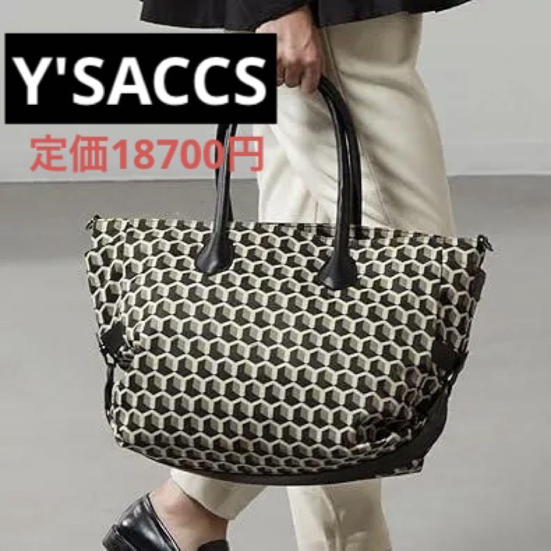 > Y'SACCS キュービックモノグラム 2WAY トートバッグ ブラウン Mサイズ 定価18700円★新品 送料無料★10-008-02 イザック 5717416