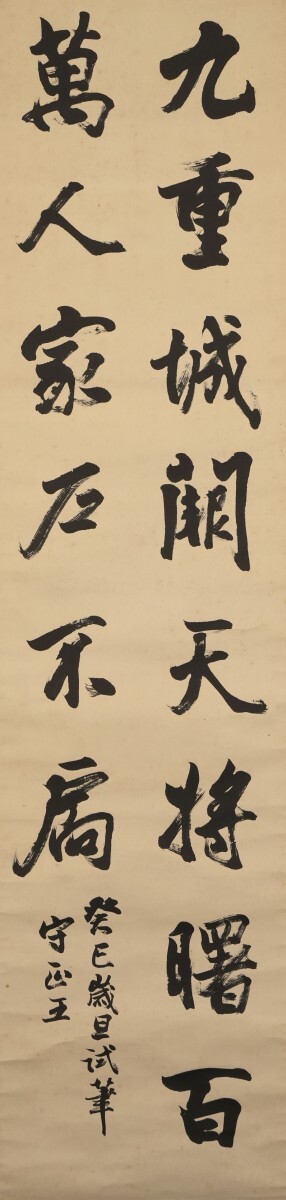 - 【真作】掛軸「梨本宮守正王 二行書」明治26年19歳 田弘道箱書 二重箱 皇族 軍人 書