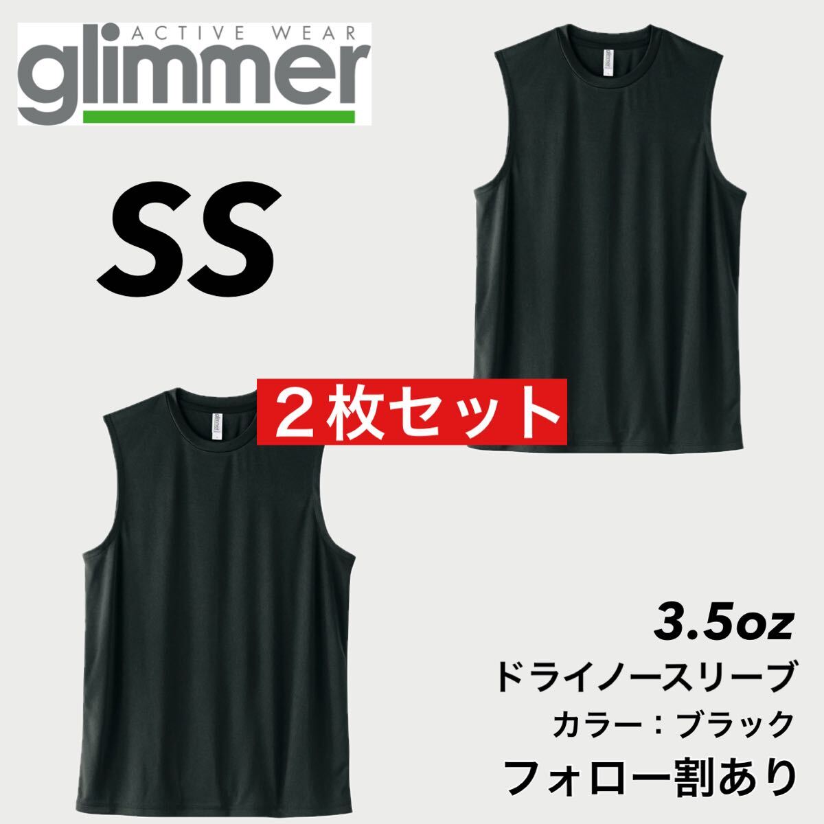 > glimmer グリマー 新品未使用 3.5oz ドライノースリーブ 吸水速乾 UVカット スポーツ ダンス インナー 黒 ブラック 2枚セット SSサイズ
