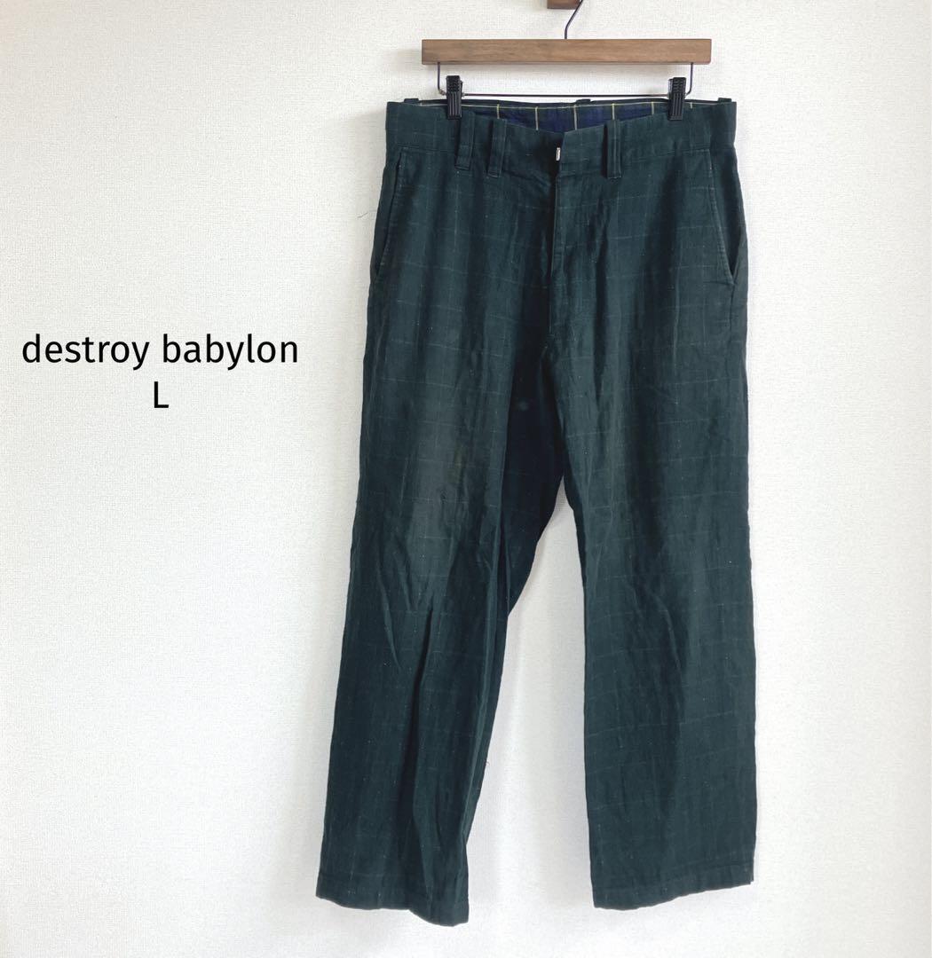 - destroy babylon カジュアルパンツ【L】チェック 深緑 薄手