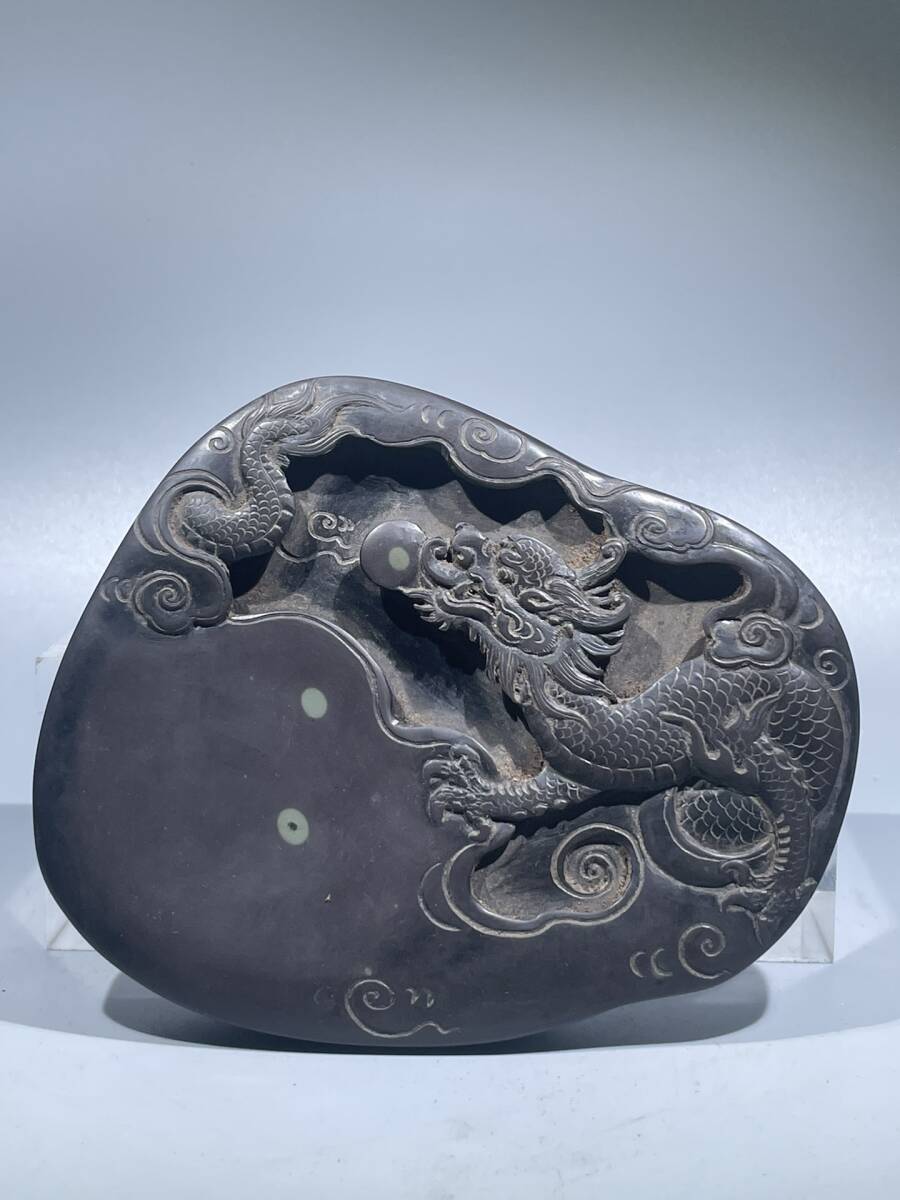 - 旧家蔵出し 端石彫 飛龍吐珠紋硯台 極細工 端渓硯 文房具 書道品 文房賞物 極細工 置物擺件 古美術品 古董品 旧家蔵出 蔵友館蔵品 稀少珍品