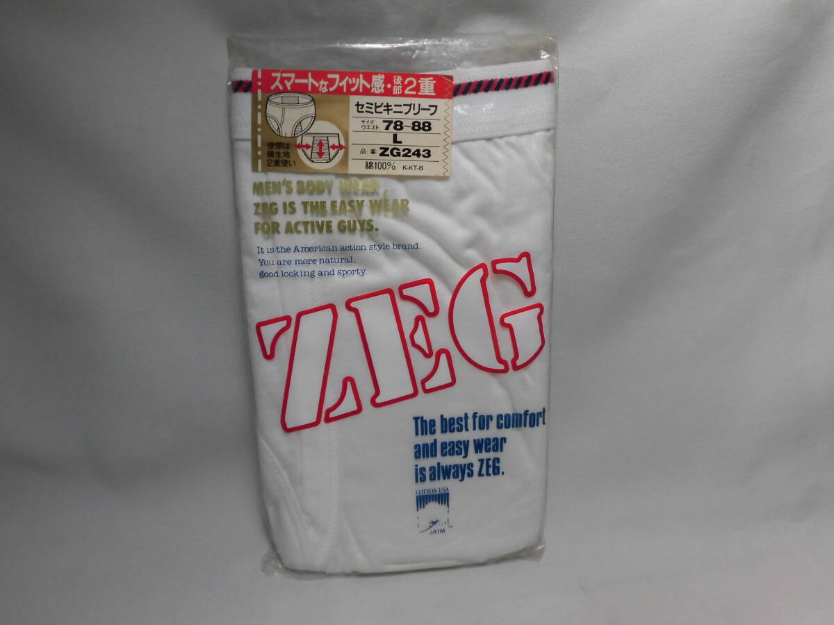 > レトロ グンゼ ZEG 天スパン 後部2重 セミビキニ メンズショーツ ブリーフ パンツ Lサイズ 白 未使用 長期保管品 4233