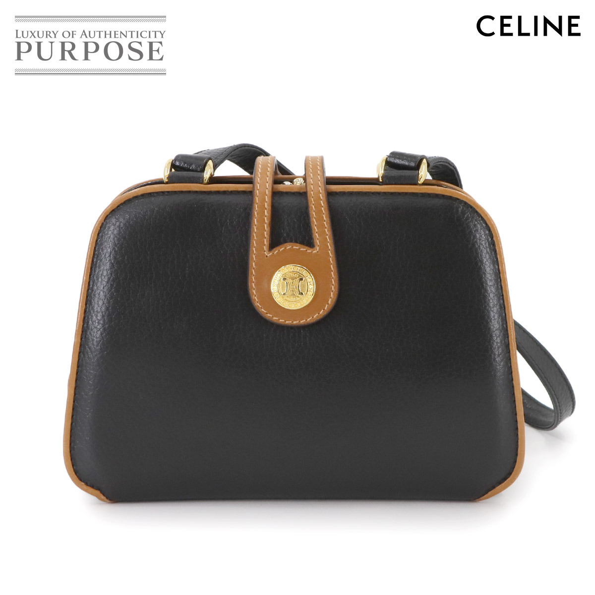 > セリーヌ CELINE がま口 ショルダー バッグ レザー ブラック ブラウン ゴールド 金具 ヴィンテージ Shoulder Bag 90280020