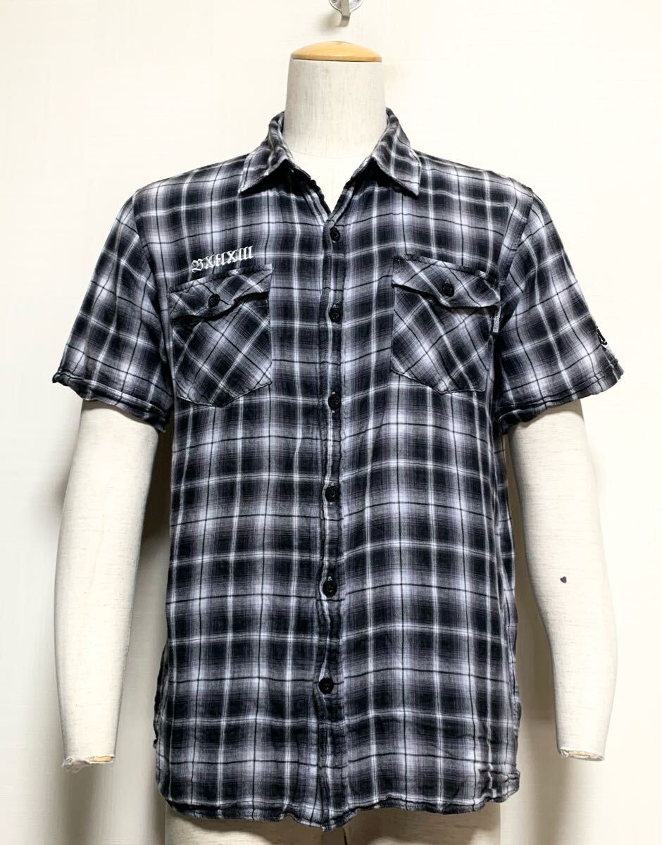 - 極上:BOUNTY HUNTER.ダブル ガーゼ 半袖 シャツ L(オンブレチェック/肩46幅54丈68/日本製/パンク/裏原/raleigh shantii tar type)