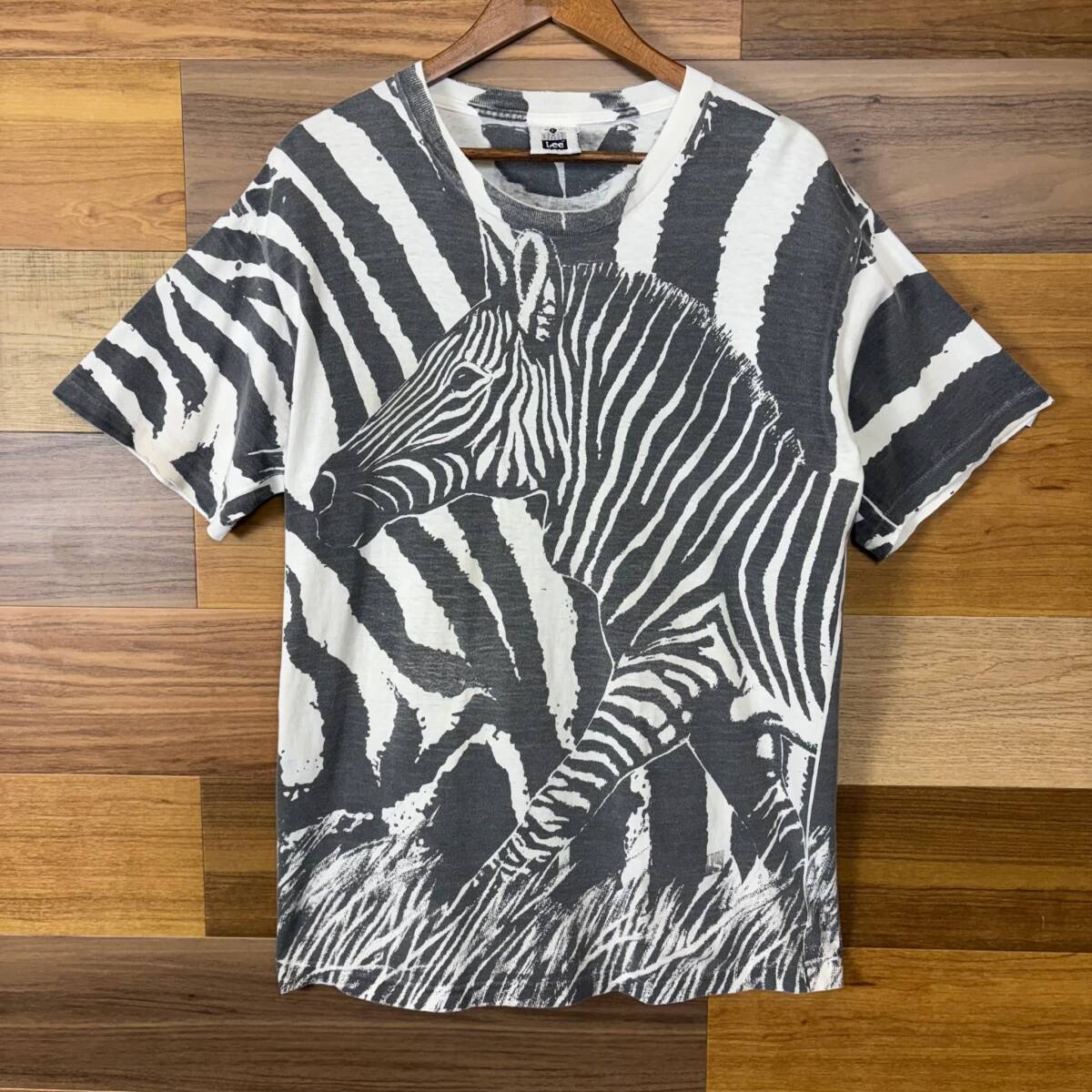 - USA製 90s シマウマ 総柄 マルチ オールオーバー パターン T-sh 動物柄 Tシャツ サイズ メンズ L シングルステッチ アメリカ製 r25042559