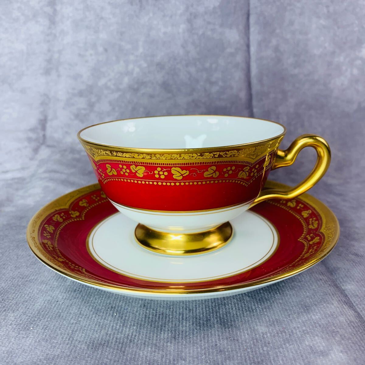 - 美品 大倉陶園 アレキサンドリーヌ カップ&ソーサー ティーカップ 金彩 エンボス 葡萄紋 高級ライン コーヒーカップ レッド 8