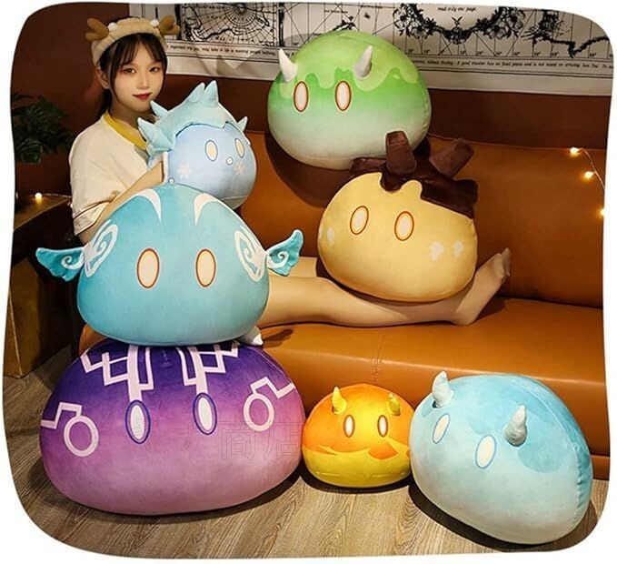 - 原神 スライム ぬいぐるみ 抱き枕 ふわふわ 柔らかい 火 草 氷 電 岩 風 水 スライム 原神グッズ 萌えグッズ 可愛い 誕生日プレ