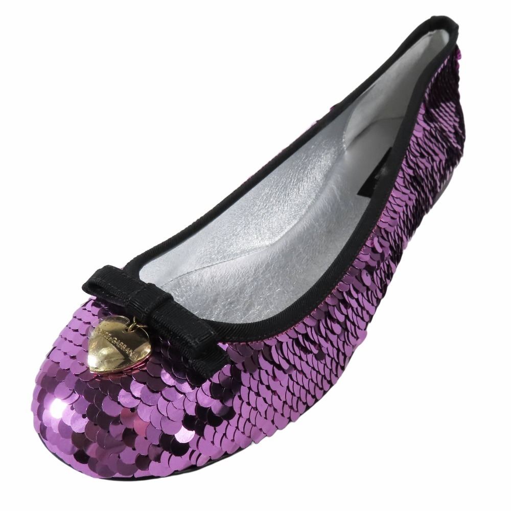 - 未使用 DOLCE&GABBANA ドルチェ&ガッバーナ スパンコール フラット バレエシューズ リボンモチーフ ハートチャーム 38 パープル