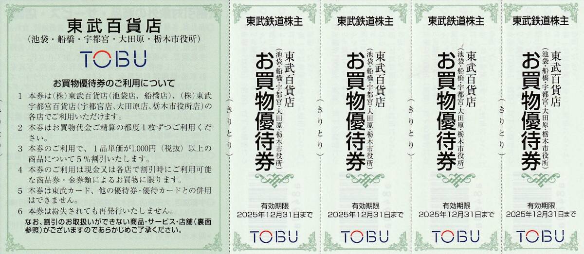 - 東武鉄道★株主優待券★東武百貨店★お買物優待券★1シート(4枚セット)即決