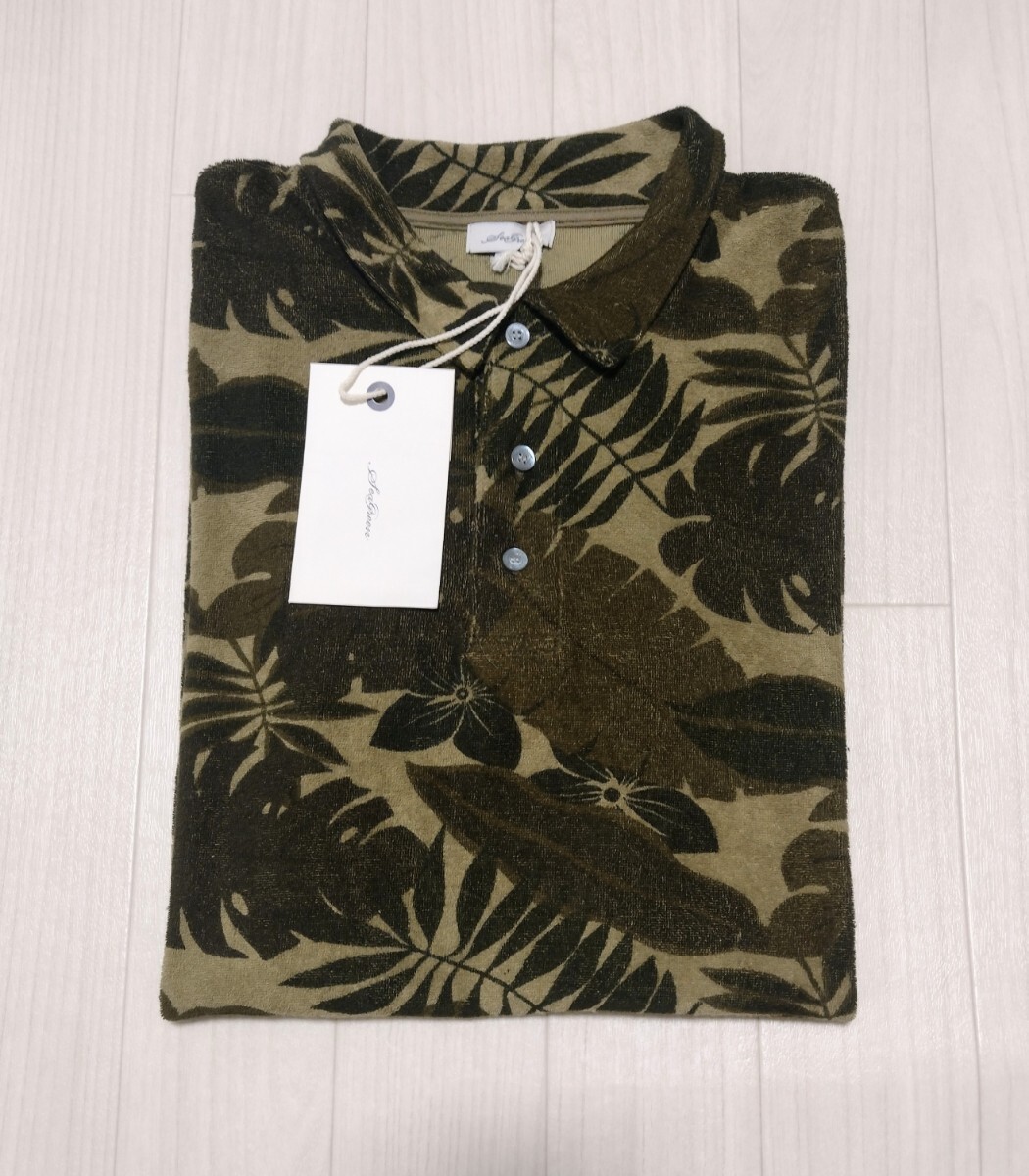 - 【新品タグ付】Seagreen ベロア ポロシャツ Lサイズ相当 シーグリーン アロハ 日本製