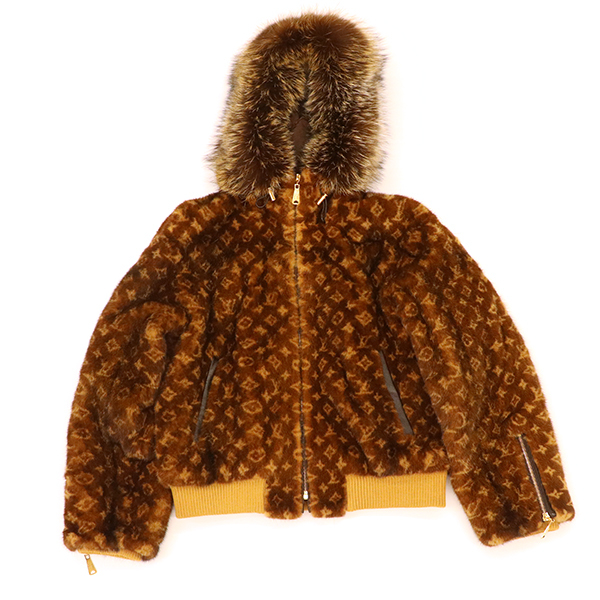 > ルイヴィトン LV ミンクジャケット ファー付きフード レディース サイズ38 モノグラム ブラウン 【yy】【中古】4000065800905270