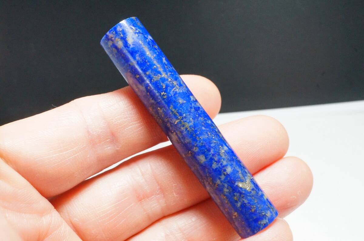 - 希少な極上品【早い者勝ち!即決特別価格】美しい天然ラピスラズリの印材甲府の貴石細工彫刻職人製作【印鑑】12.3mm丸②