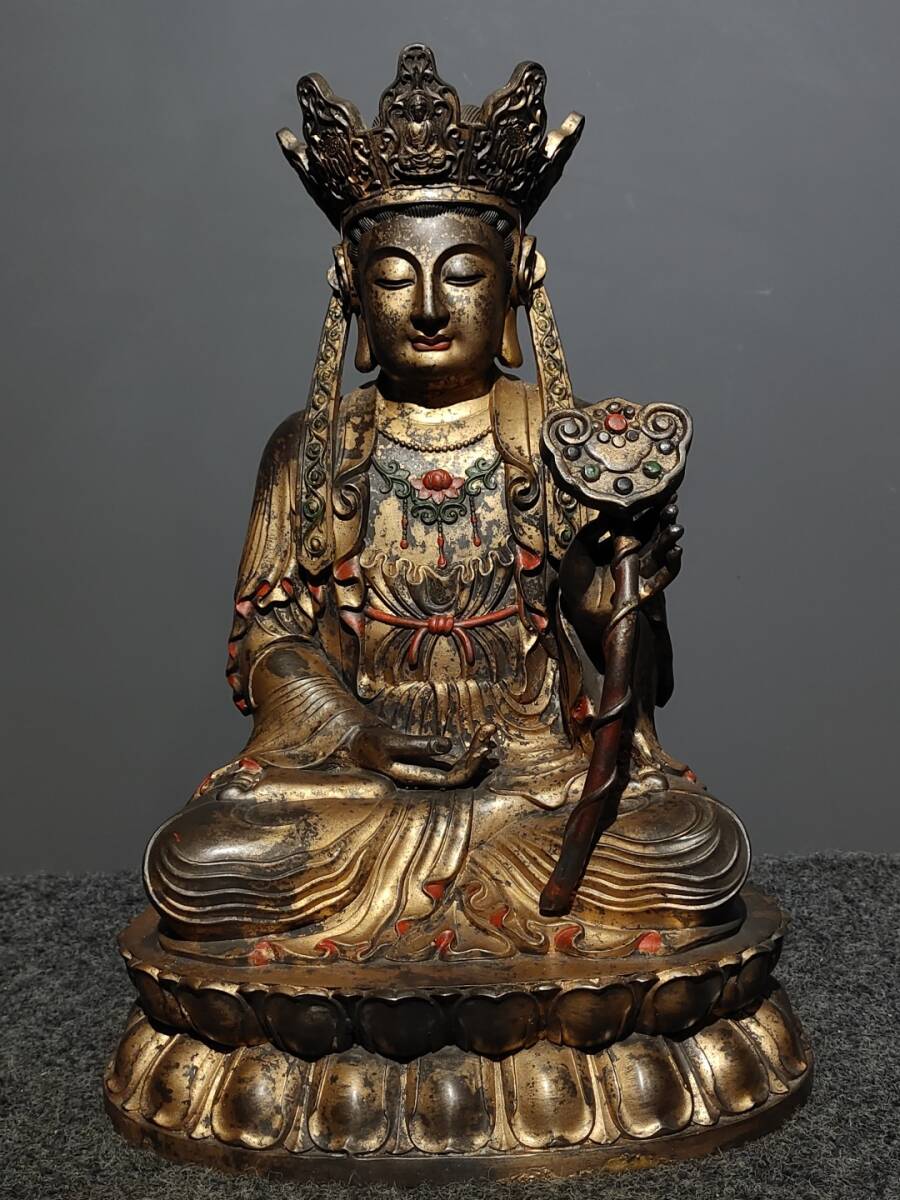- 仏像 清代 旧蔵 純銅蒔絵仏像造像【華厳菩薩】 チベット古寺 銅製 銅琉金 唐物 收蔵品 時代物 古美術 古置物 希少珍品 供養品 文房具6.11