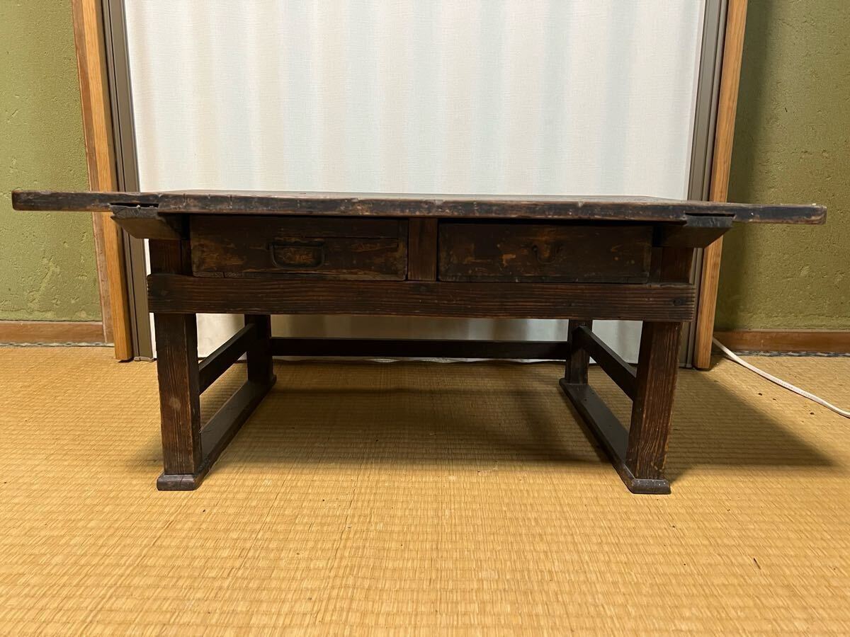 - 【YO-1090】文机 勉強机 ローテーブル 引き出し付 昭和レトロ アンティーク