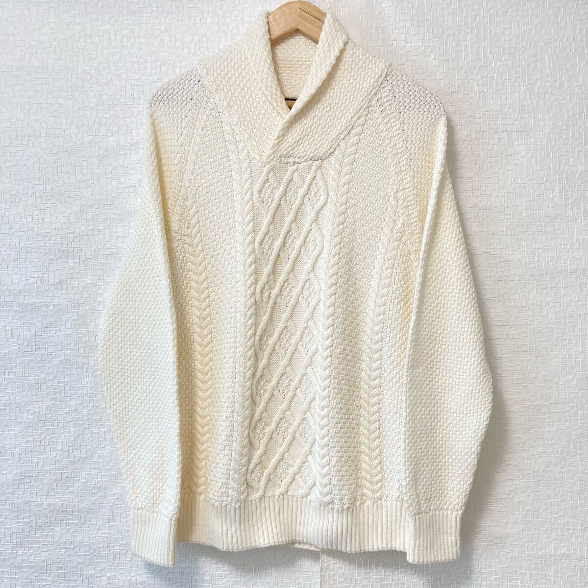 > 状態良好◎ 羊毛使用!【ZARA MAN】ザラマン ウール混 ショールカラー ニット セーター 無地 ケーブル編み ホワイト メンズ L/Y32271UU